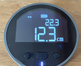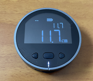 下面に回転する部分があり、これを回転させることで、長さを測ります。長さを測りたいものに、この回転部分を押し当てて、回転する方向にデジタルメジャーを動かせば、長さが測れるということです。すべって回転しない場合は、正確に測定できないので、注意が必要です。