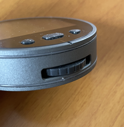 このボタンを長押しすると、電源が入ります。電源を切るときも、このボタンを長押しします。また、電源が入ったまま、3分ほど放置すると、自動で電源がオフになります。