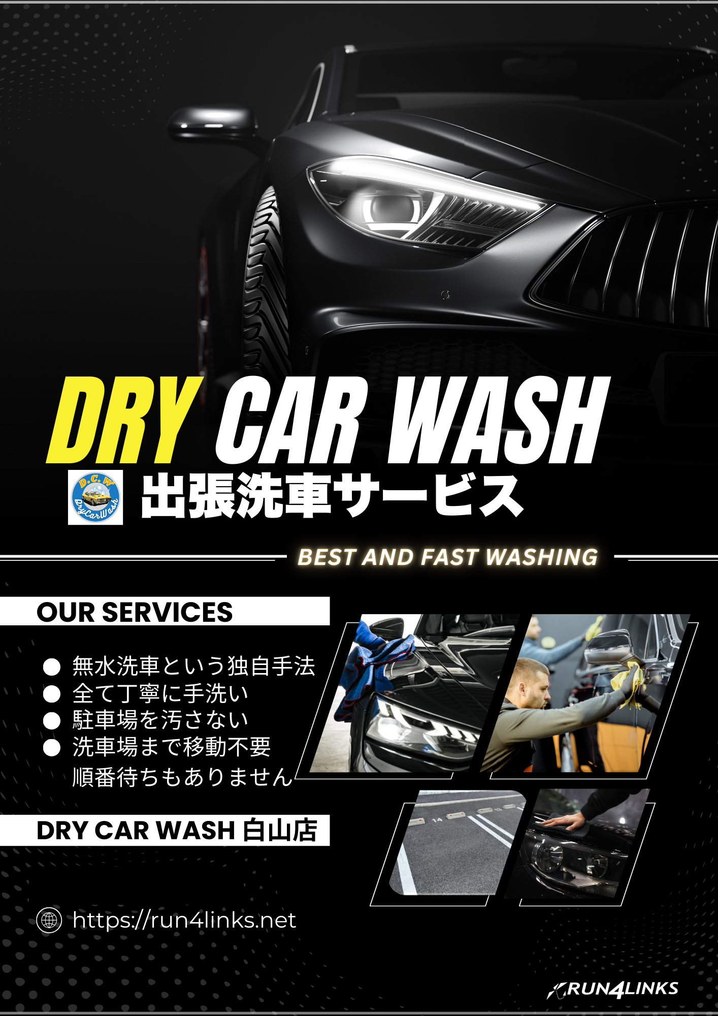 無水洗車専用の洗剤を使用し、ほとんど水を使用しませんので、駐車スペースも汚れません。